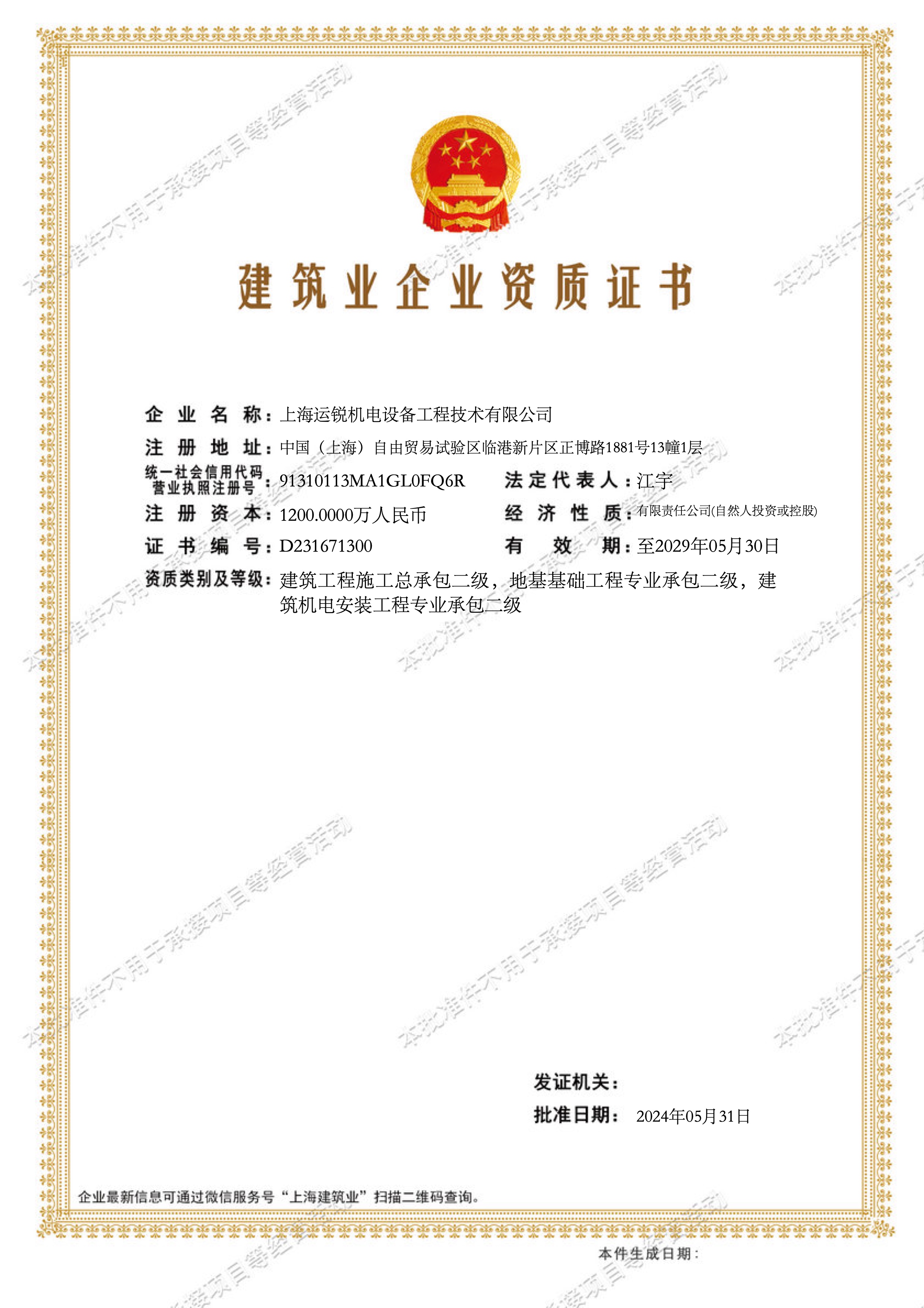 广东会获批上海住建委颁发的建筑业企业资质证书,成为行业内唯一同时具备建筑工程施工总承包资质、钢结构制作与安装专业承包资质,地基基础工程专业承包资质、建筑机电安装工程专业承包资质的设备生产厂家。并获得质量管理体系认证、环境管理体系认证、职业健康安全管理体系认证等三体系认证。