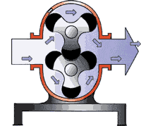 罗茨鼓风机为容积式风机,输送的风量与转数成比例,三叶型叶轮每转动一次由2个叶轮进行3次吸、排气,与二叶型相比,气体脉动变少,负荷变化小,机械强度高,噪声低,振动也小。在2根平相行的轴上设有2个三叶型叶轮,轮与椭圆形机箱内孔面及各叶轮三者之间始终保持微小的间隙,由于叶轮互为反方向匀速旋转,使箱体和叶轮所包围着的一定量的气体由吸入的一侧输送到排出的一侧。各支叶轮始终由同步齿轮保持正确的相位,不会出现互相碰触现象,因而可以高速化,不需要内部润滑,而且结构简单,运转平稳,性能稳定,适应多种用途,已运用于广泛的领域。旋涡风机和罗茨风机有很大的区别,结构形式和工作原理及工作特性都不同。
