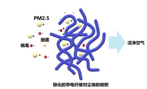 通常在熔喷布的生产过程中会驻极处理,让无纺布带上更多静电,具有静电吸附作用。静电吸附是指当过滤材料的纤维带电时,通过荷电纤维的库仑力实现对粉尘细菌病毒的捕获。