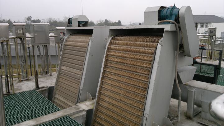 生活污水首先通过的是格栅,一般有粗细两道。粗格栅在10-30毫米的间隙,细格栅在3毫米的间隙左右。污水中漂浮物和悬浮物在通过这里时被拦截,被螺旋输送机或皮带输送机运输至堆渣点,外运垃圾填埋场填埋。经过粗细格栅过滤后(有的在粗格栅后细格栅前)的污水为了降低后续系统复杂度和节能,一般都要通过泵站提升到全污水厂最高点,然后依靠重力流经后续的处理设施。