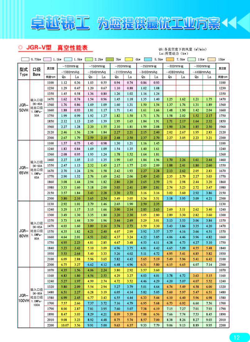 注:1、抽气速率系指在配用推荐前级泵的条件下,罗茨真空泵的入口压强在6650pa—2.66pa范围内所测得的最大抽气速率。